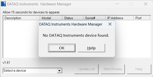 I connect DI718B with PC through internet cable, but it cannot find device on instrument handware manager. In addition, I config ip address follow the "DI718B ... handware manual" in my PC, but it still doesn't work.